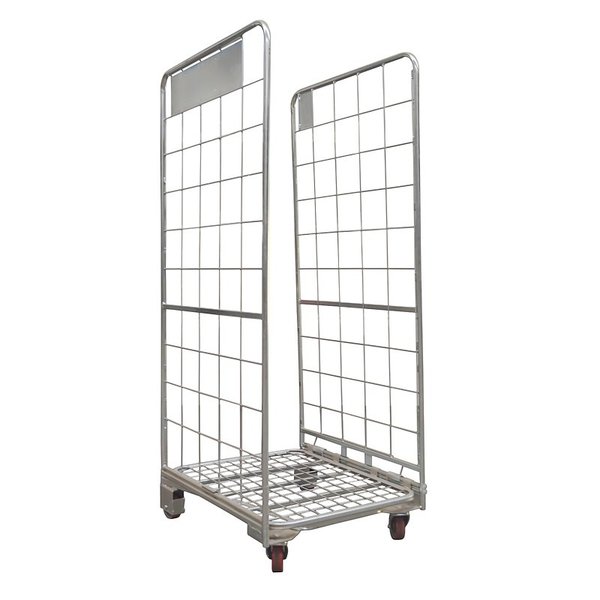 Roll conteneur emboîtable deux côtés d'occasion en métal galvanisé, structure cadre en A. Conception ergonomique et système unique de ressorts roll est innovante, en effet il est équipé d'un fond pliable et d'un système de base repliable sur ressorts.
