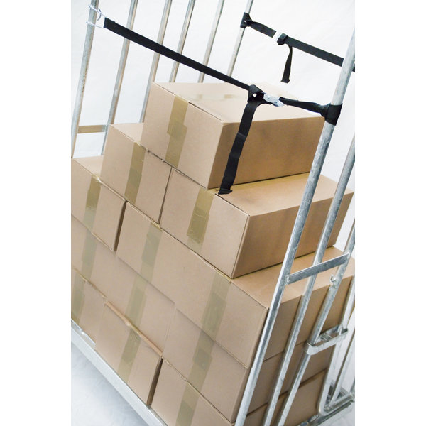 Les 2 parois latérales du roll, maintenues par des sangles d'arrimage, sont disposées sur le côté court du roll. Ce positionnement spécifique sur le côté court facilite le chargement et le déchargement des marchandises, bacs, sacs ou caisses norme Europe car les côtés longs sont directement accessibles. ce modèle est extrêmement adapté en termes de fonctionnalité et de facilité d'utilisation pour rendre les processus logistiques du secteur agroalimentaire plus efficaces. Les parois latérales sont également munies d'un renfort d'angle supplémentaire.