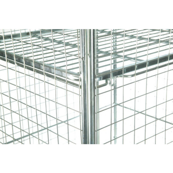 Le conteneur roulant possède une base, un toit et des parois latérales grillagées, maille de 50x50 mm qui garantissent la sécurité de vos produits.