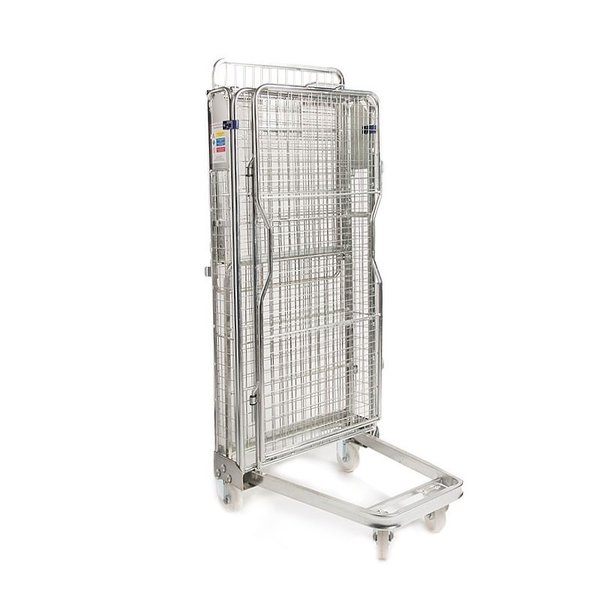 La construction emboîtable avec base cadre en A permet de gagner de l'espace pendant le transport de retour ou lorsque le roll conteneur est entreposé et non utilisé.