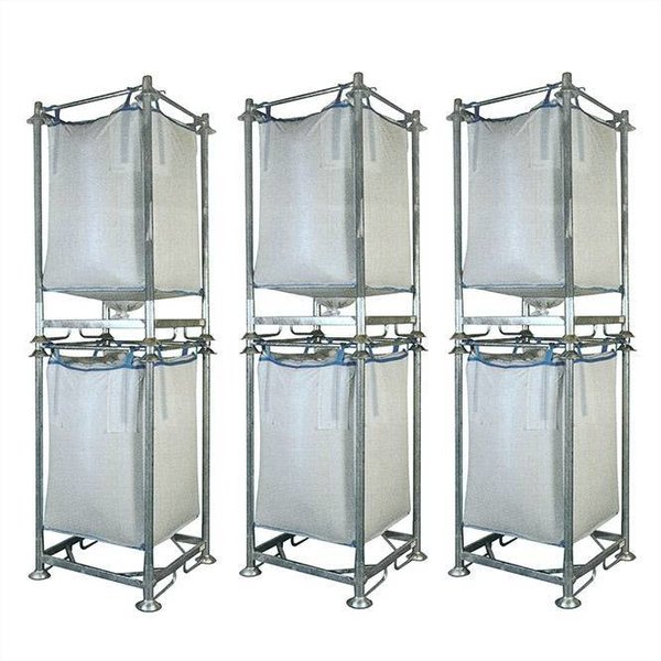 Ce support à Big Bag avec cadre en acier galvanisé à chaud convient au transport ou le stockage de GRVS (grands récipients vrac souple), ou big-bags, et peut être stocké en extérieur car résistant à la rouille. Il est notamment conseillé pour les secteurs de l'industrie agro-alimentaire, chimique, pharmaceutique, matériaux de construction et tout secteur manipulant des produits en vrac.